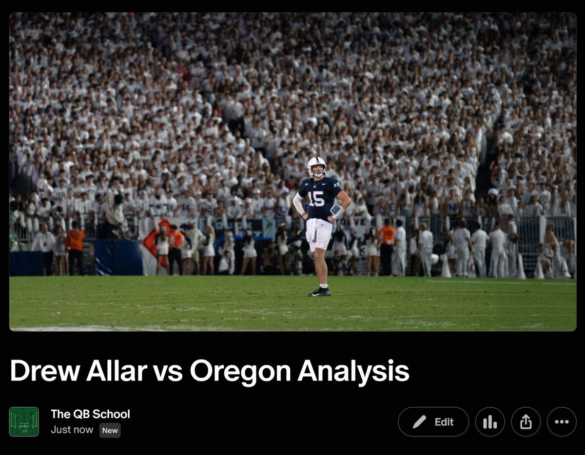 The QB School YouTube videos are detailed, fun, and share football knowledge at the highest level. The videos will improve your understanding of football, QB play, offensive and defensive schemes and execution. And, finally, I hope the videos increase your appreciation for the game.